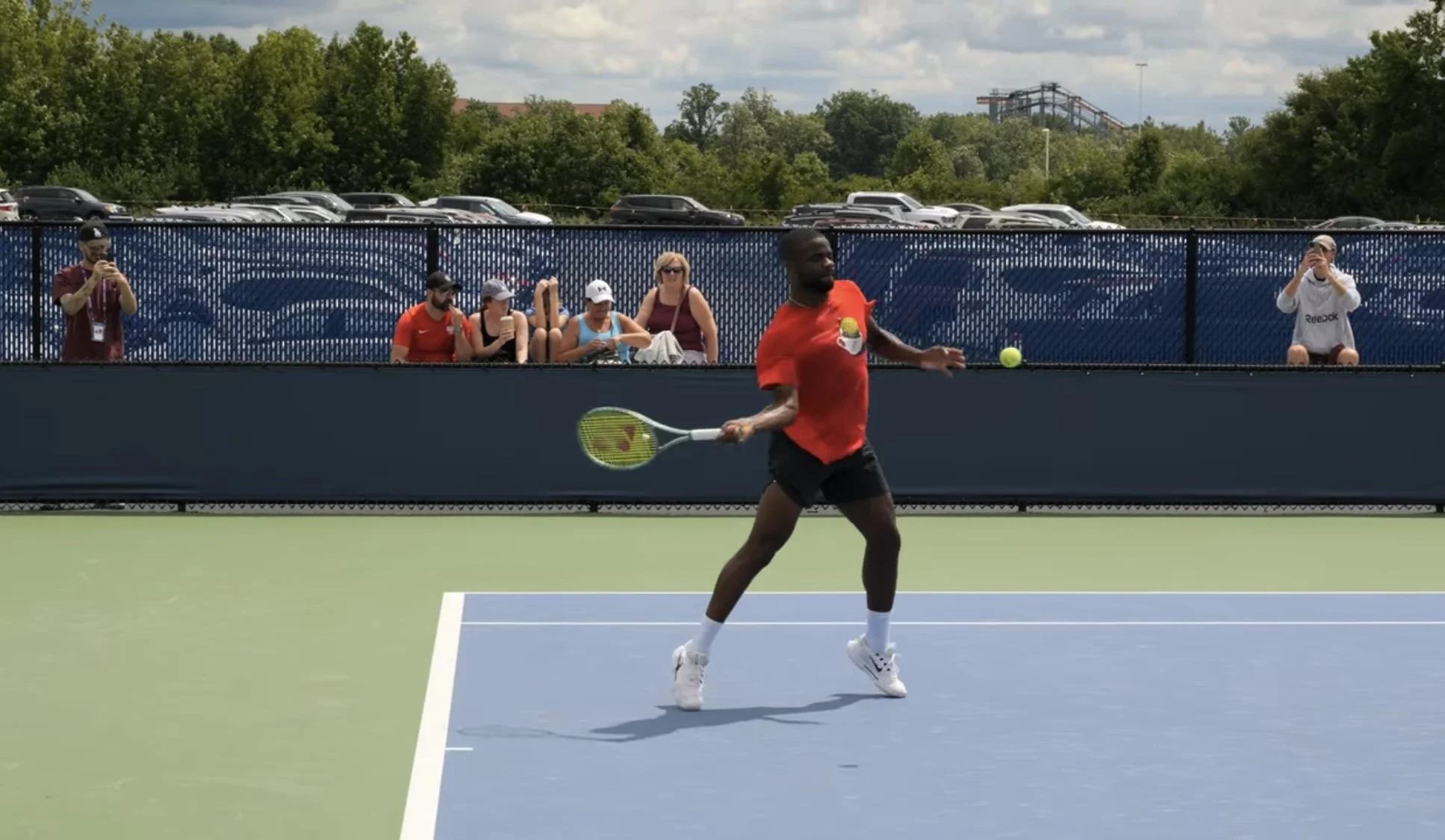 o Il est en avant du pied avant, à coter du corps (la distance latérale est différente selon la prise de raquette et l’envergure du joueur) et à la hauteur de la hanche (cette hauteur peut être adapté selon la balle reçue grâce à une flexion des jambes).